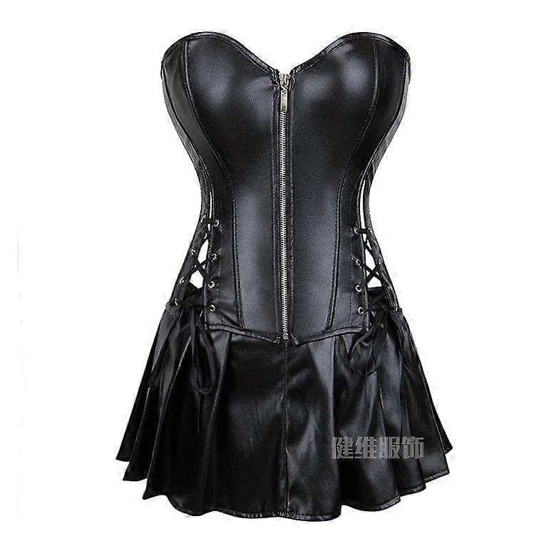 Shapewear, bright leather skirt, push-up slimming tube top, fishbone PU leather corset with zipper