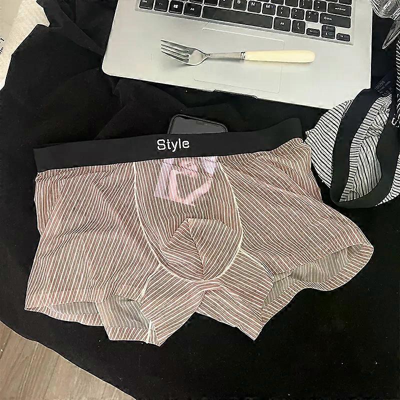 Striped Men's Boxy Underwear Summer Ice Silk Cool Feel Transparent Elastic Light Soft Youth Mid-rise U Convex Pouch Boxer Shorts