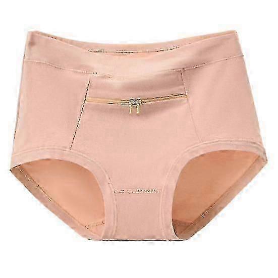Women Underwear Anti theft Zipper Pocket High Waist Seamless Stretch Breathable Cotton Middle aged Mom Grandma Brief Panties Underpants