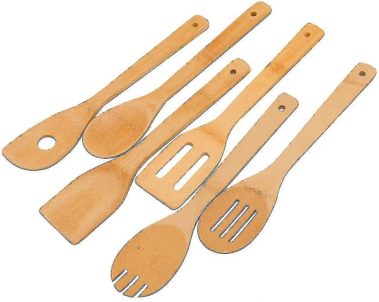 Wooden Spoons Cooking Utensils Set - 6 Pieces Bamboo Kitchen Spatulas For Non Stick Cookware As House Warming