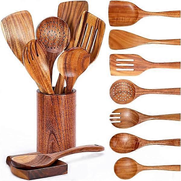 9-piece cooking spoons, wooden kitchen utensils with holder.