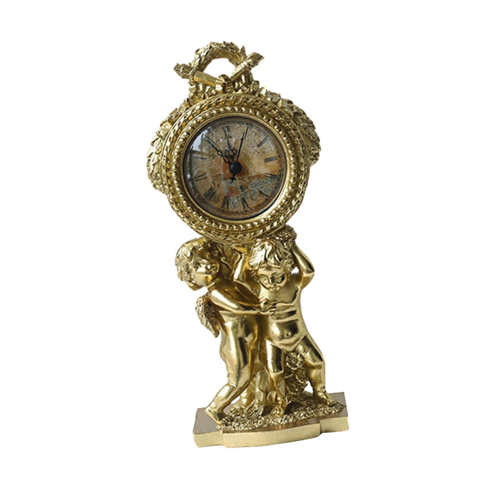 Angel Statue Desk Clock Twin Cherubs Mantle Clock for Cafe Fireplace Outdoor Gold