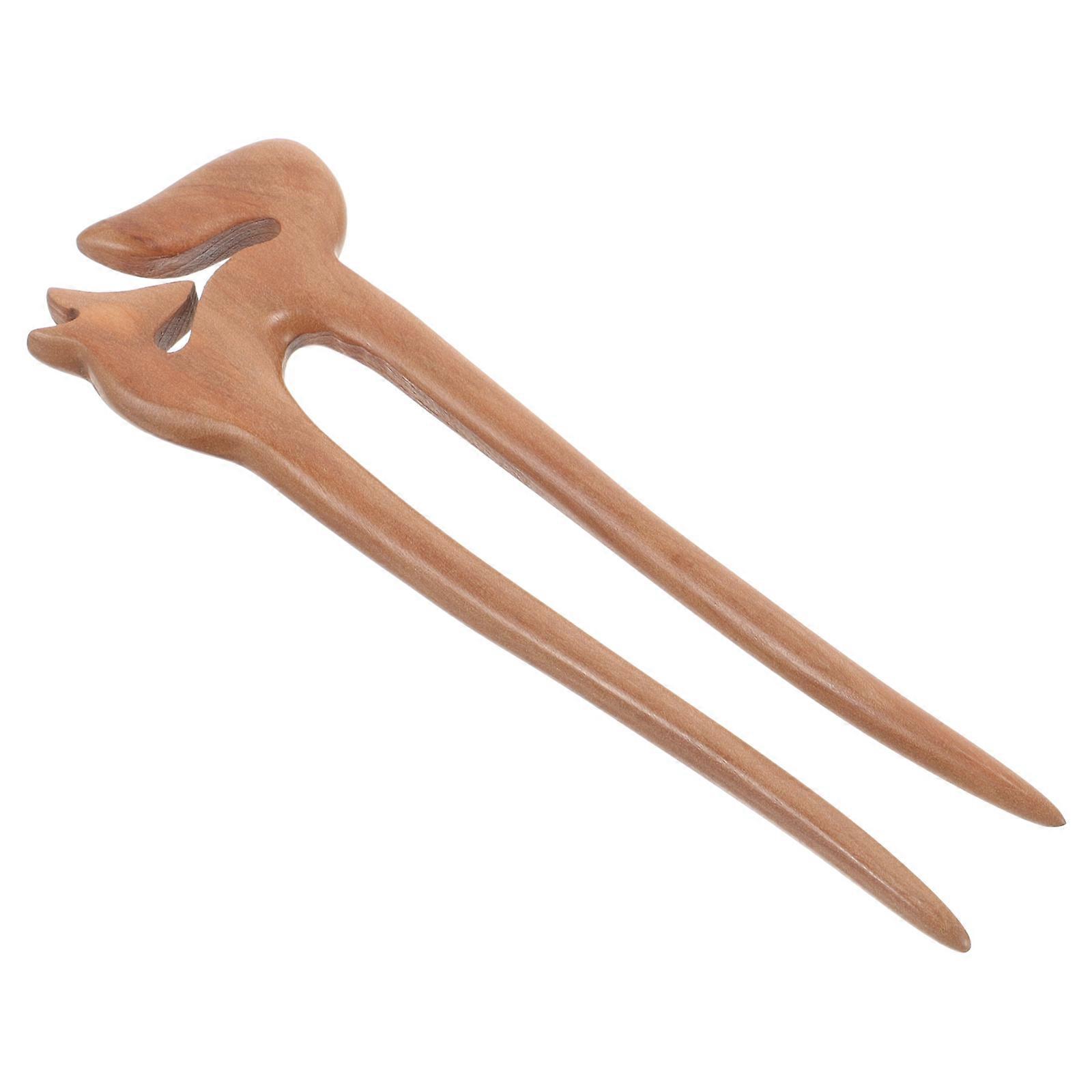 U Shaped Hairpin Chinese Style Accessory For Women Chocolate Color Hairstyle Accessory 12.50X3.80X0.60CM Peach Wood 1Pcs
