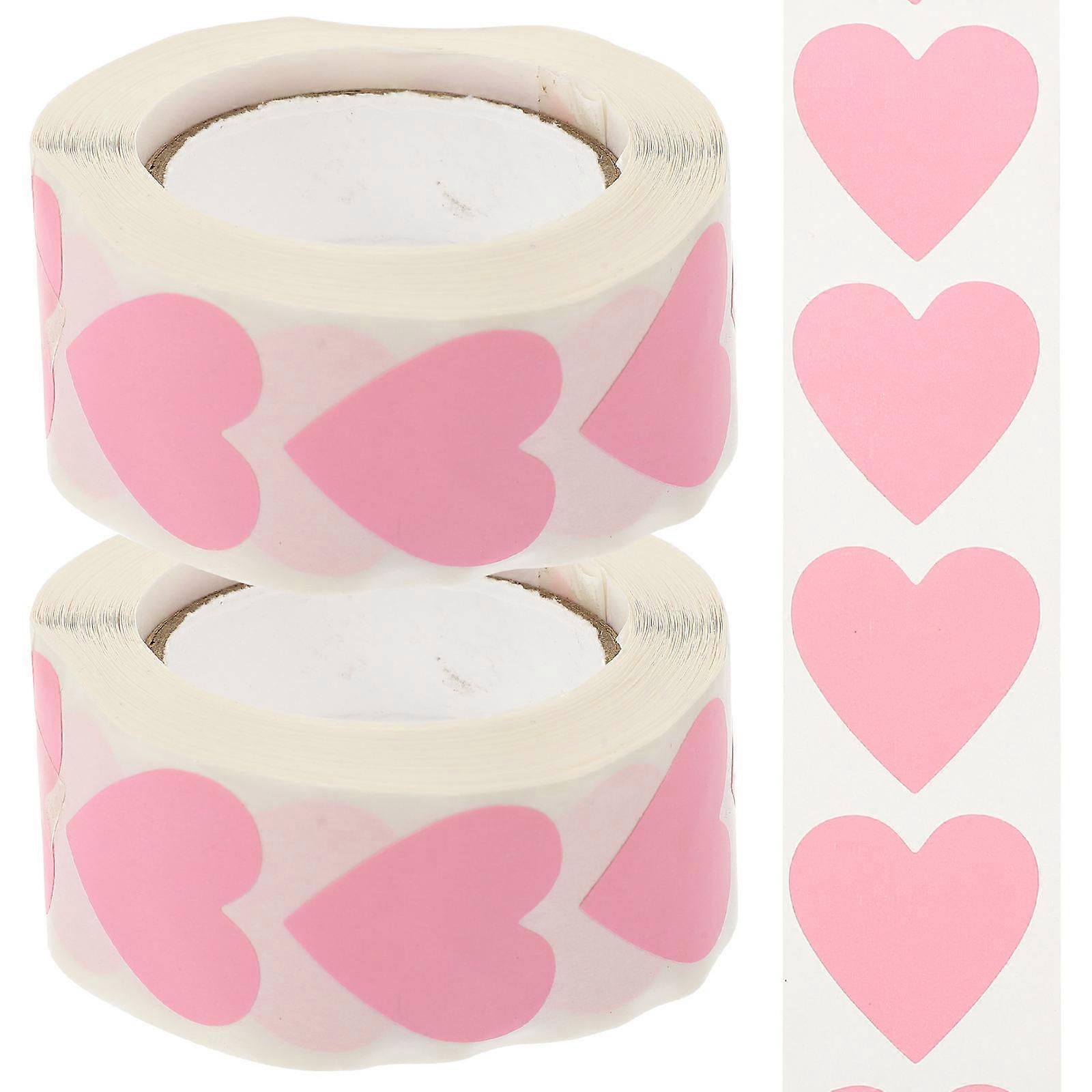 Heart Shape Love Stickers Sealing Stickers for Diy Crafts Pink Adhesive 2 Rolls