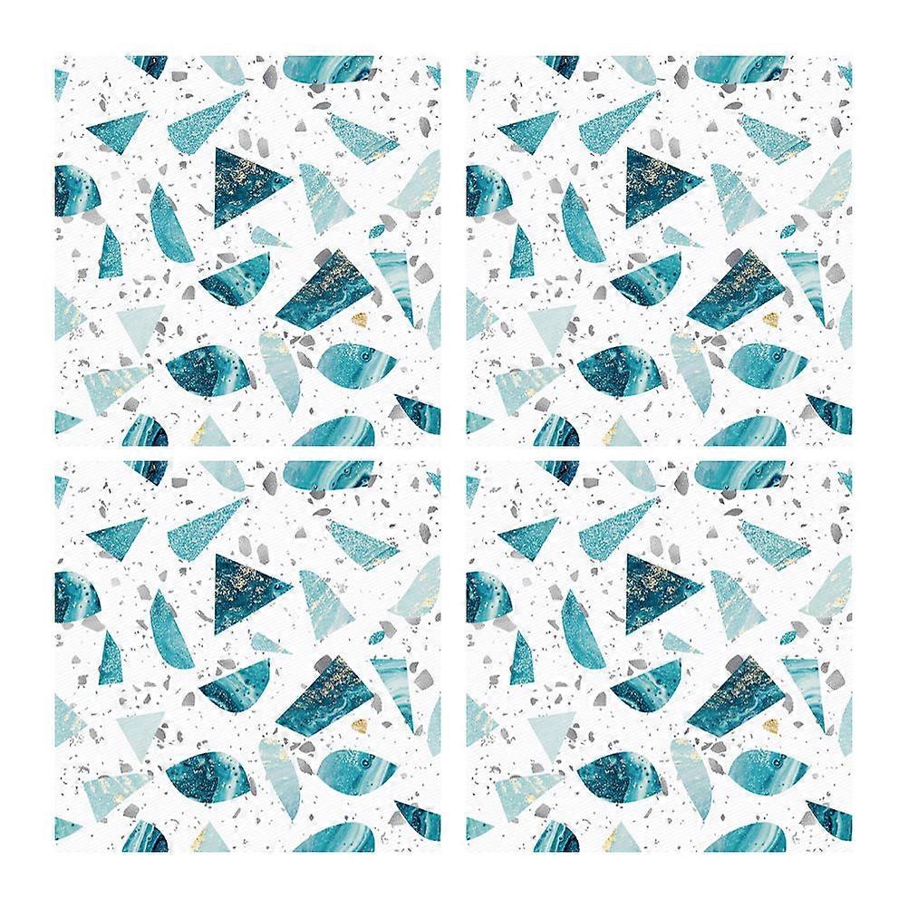 Antiskid Terrazzo Effect Floor Stickers For Homeowners 30x30cm Blue Self-Adhesive 4Pcs