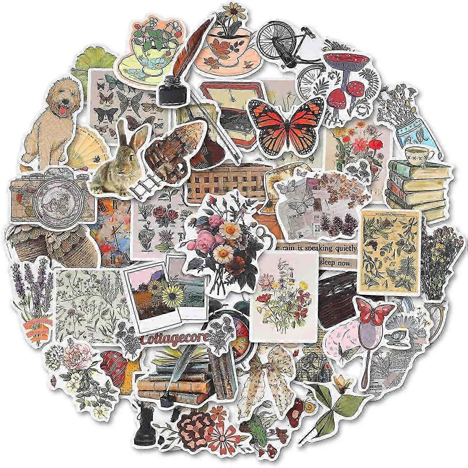 Vintage Stickers, 50 Scrapbook Stickers Vintage Diary Supplies, Waterproof Vinyl Decals compatible P