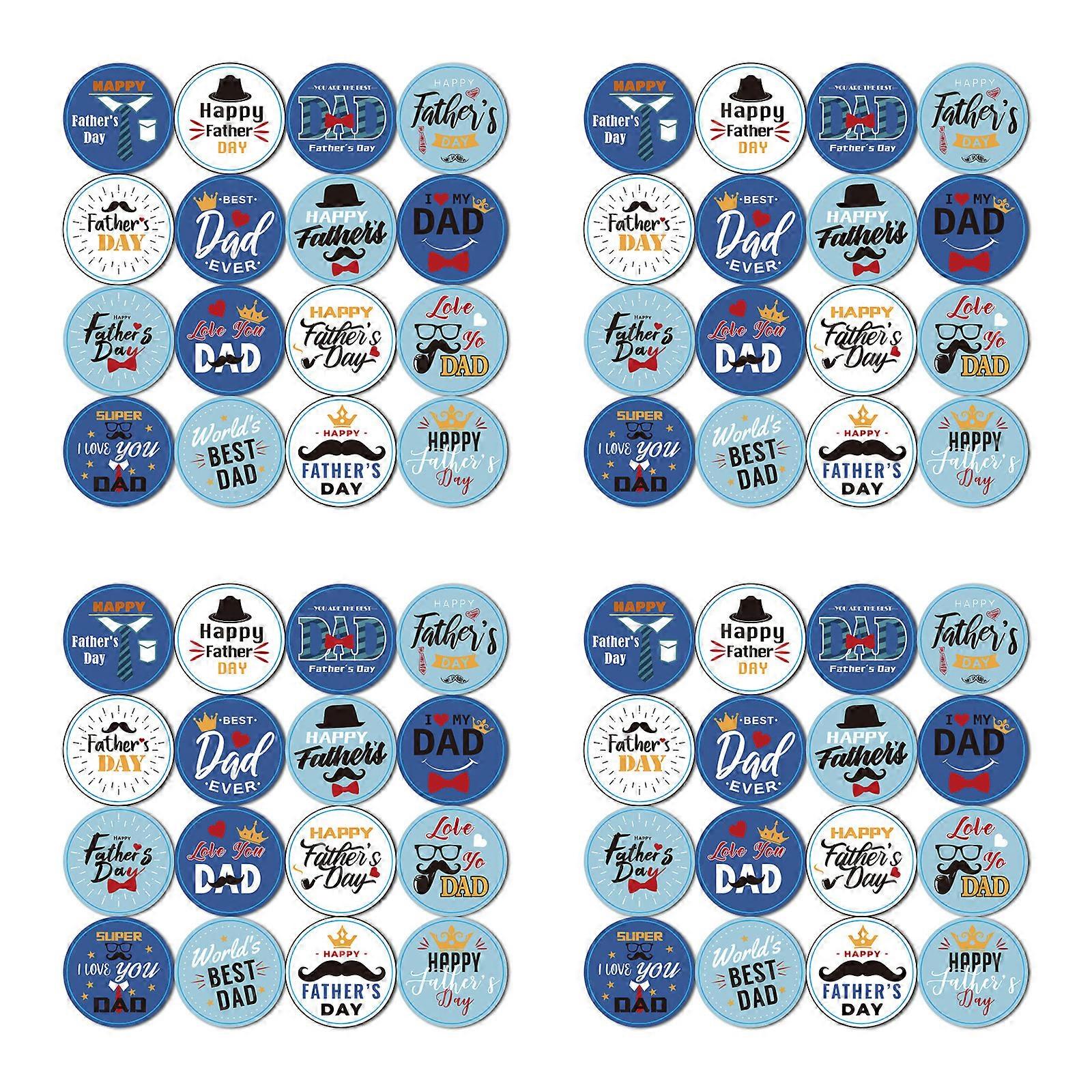 Happy Father's Day Stickers 64pcs/4 sheets Hat Beard Letters Art Decal for Greeting Card Dessert Cupcake Decoration Gift Bag Packaging