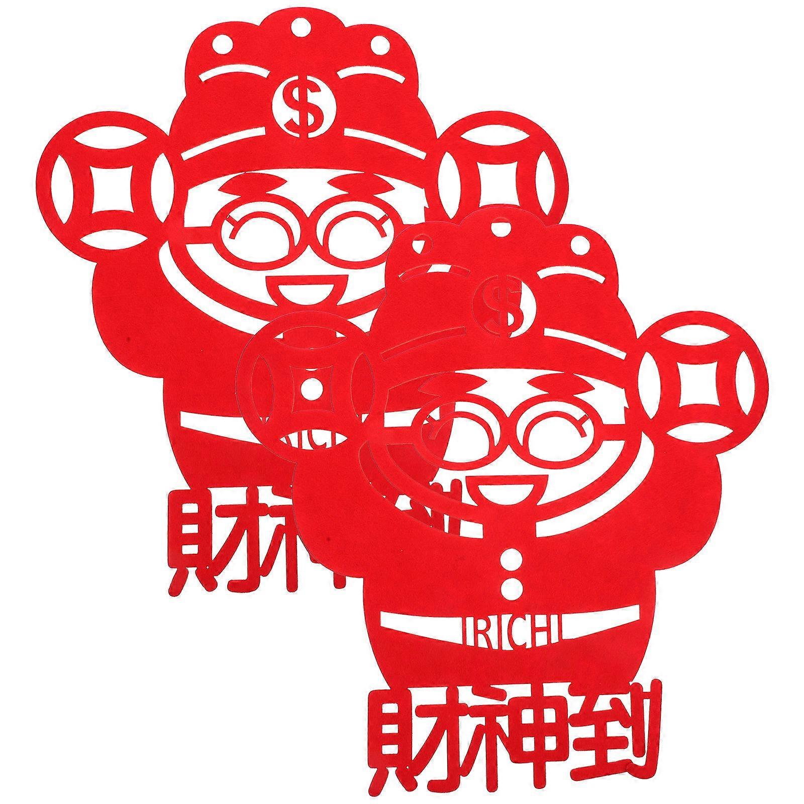 Red Lucky Character Sticker for Door Decor Made of Non Woven Fabric Perfect for Chinese New Year Festive Atmosphere 2pcs