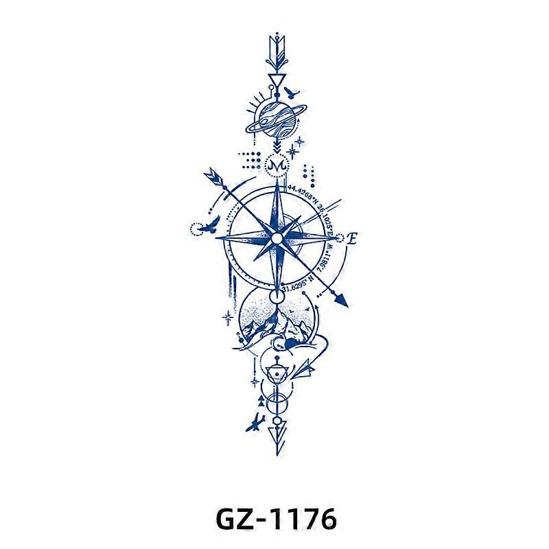 Temporary Tattoo Sticker, Blue Floral Design 8