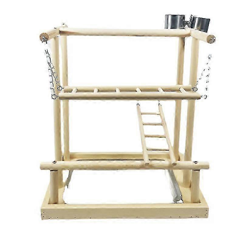 Bird Playground Natural Wood Healthy Relieve Boredom Interactive Bird Perch Gym Playpen with Ladders Double Ladder