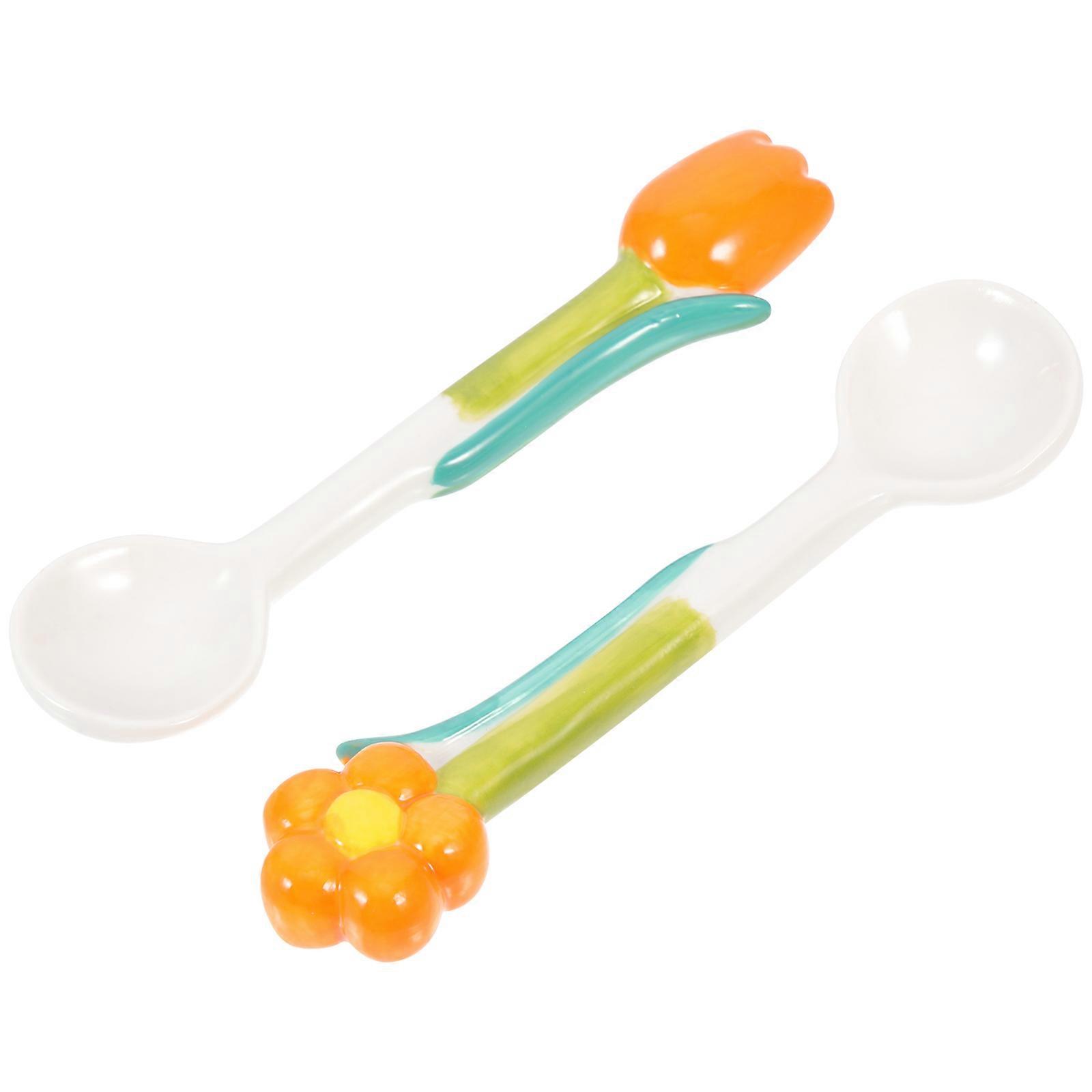 Tulip Shaped Mixing Supply Spoon For Families Daily Use 2Pcs