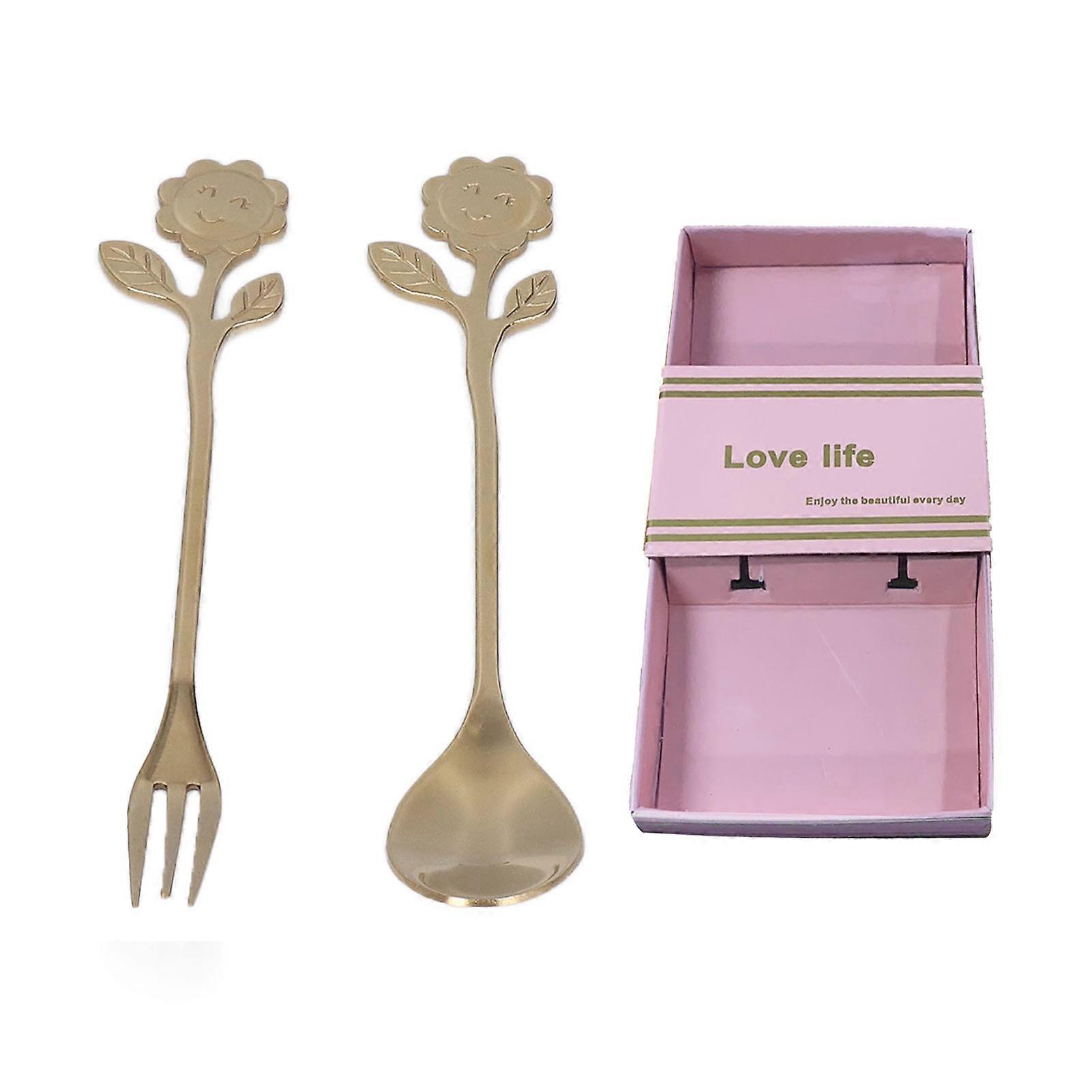 Spoon Fork Set One Piece Molding Mirror Polishing Elegant Style Comfortable Tableware for Home GiftGold