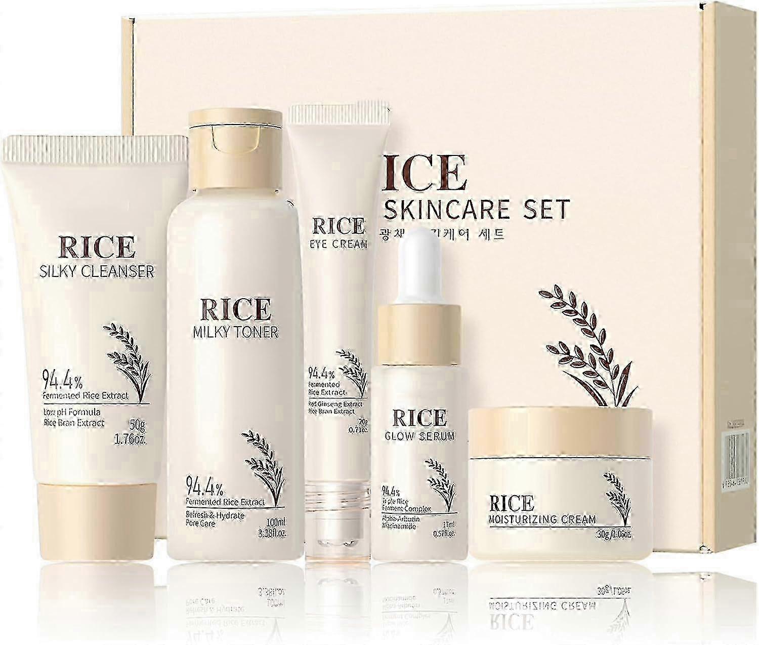 suitable for korean skincare set, glass skin care set with rice cleanser, toner, serum, cream, eye cream, facial kit for glowing skin, gift