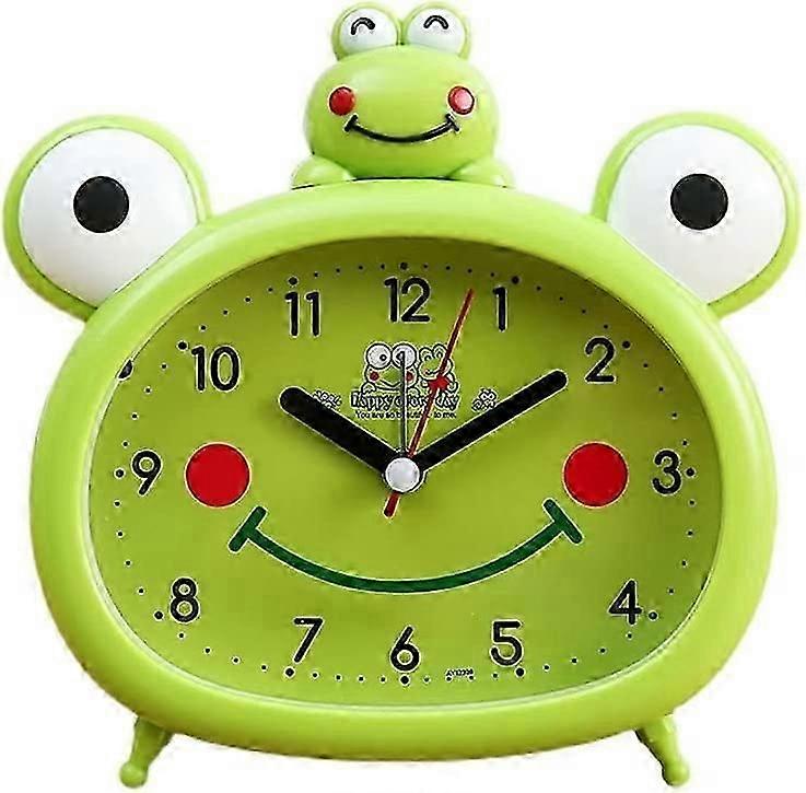 Cartoon Frog Alarm Clock - 5.5" Silent Non-Ticking with Night Light, Battery Operated, Kids Bedroom Gift