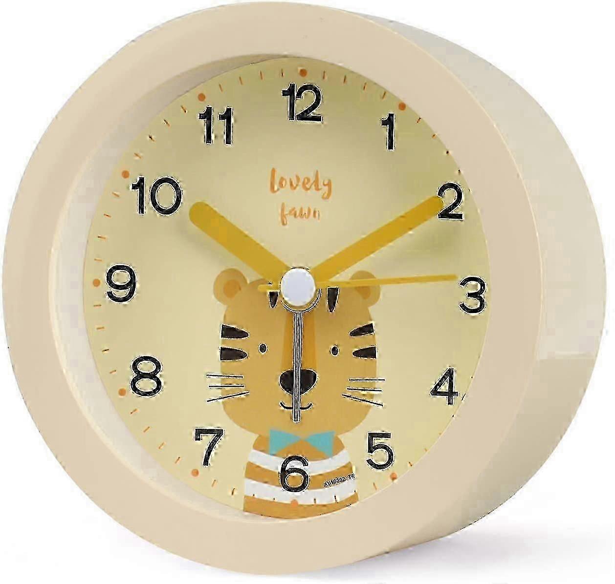 Kids Alarm Clock Analog Silent Non Ticking Cute Bedside Clock with Night Light (Yellow)
