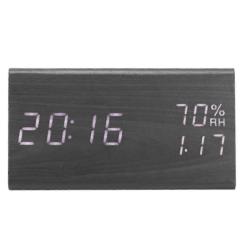 Wooden Alarm Clock, Wood LED Digital Desk Clock With Time Temperature Adjustable Brightness