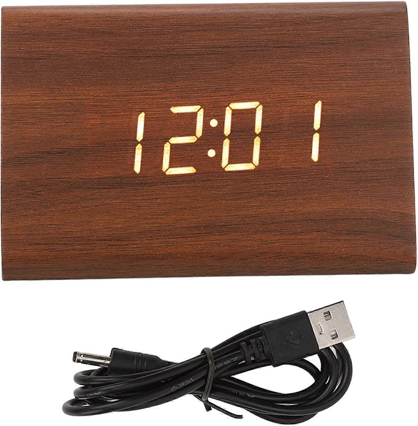 Wooden Digital Alarm Clock, Modern LED Desk Clock with Triangle Design for Bedroom, Bedside, Office & Home Use