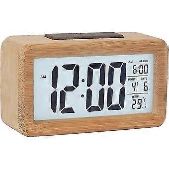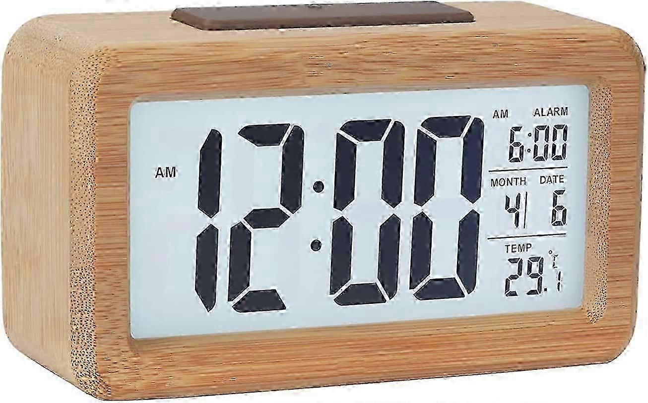 Wooden Digital Alarm Clock,LED Display Wood Grain Alarm Clock,Smart Sensor Night Light