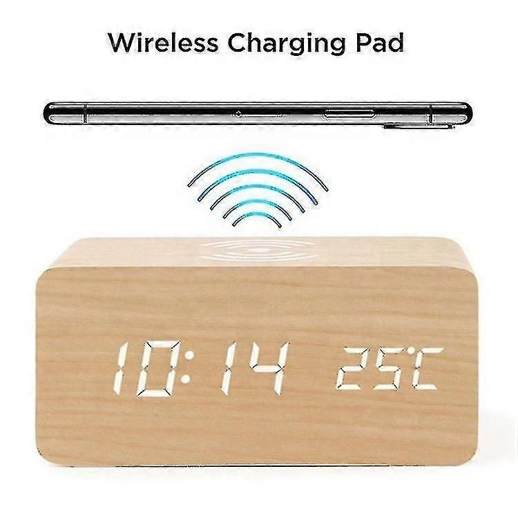 Wooden Digital Alarm Clock W/ Wireless Charging - Brown SXQ