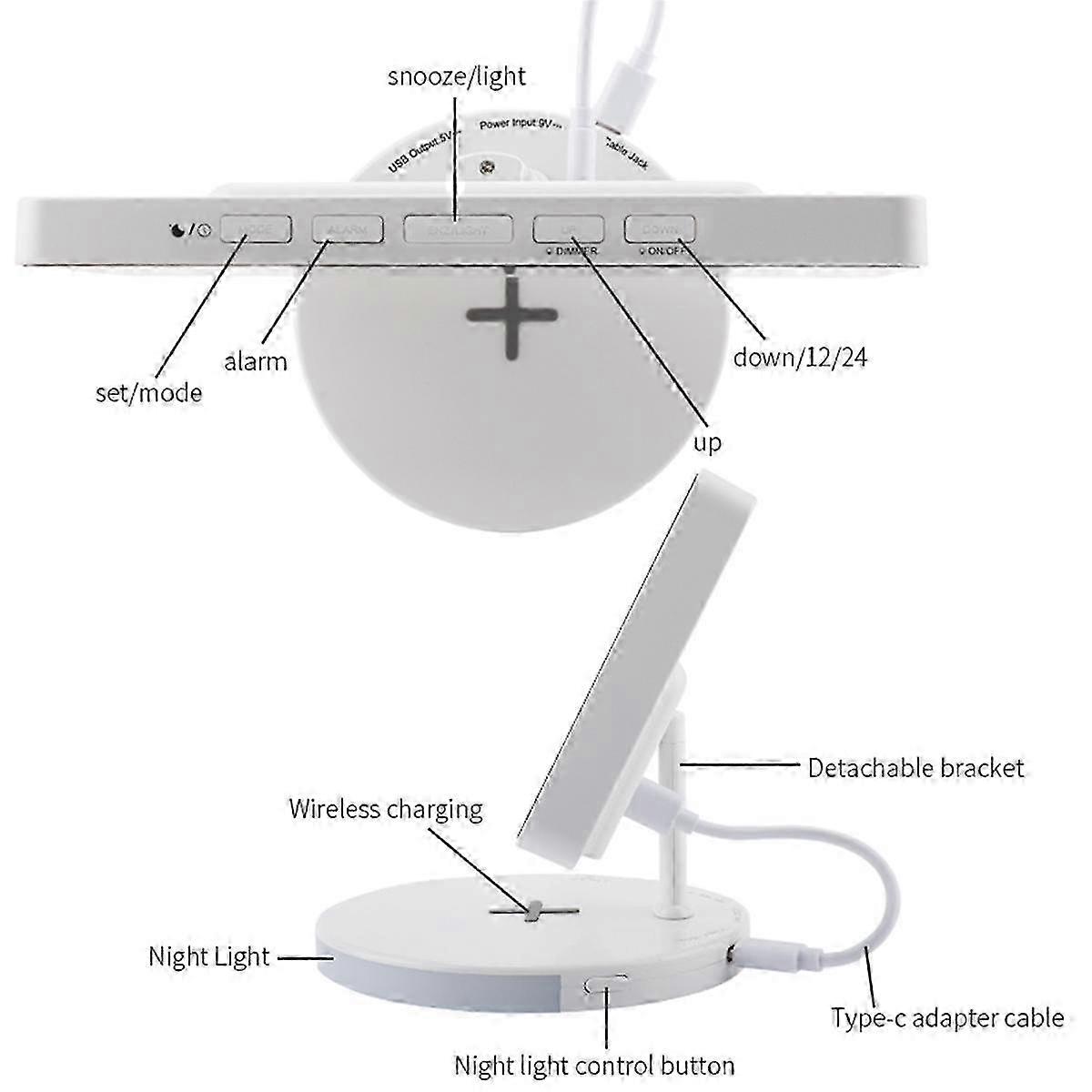 Digital Alarm Clock With Wireless Charging, Mirrored Led Clock For Bedroom Decor, For Home, Bedroom Office Decor White