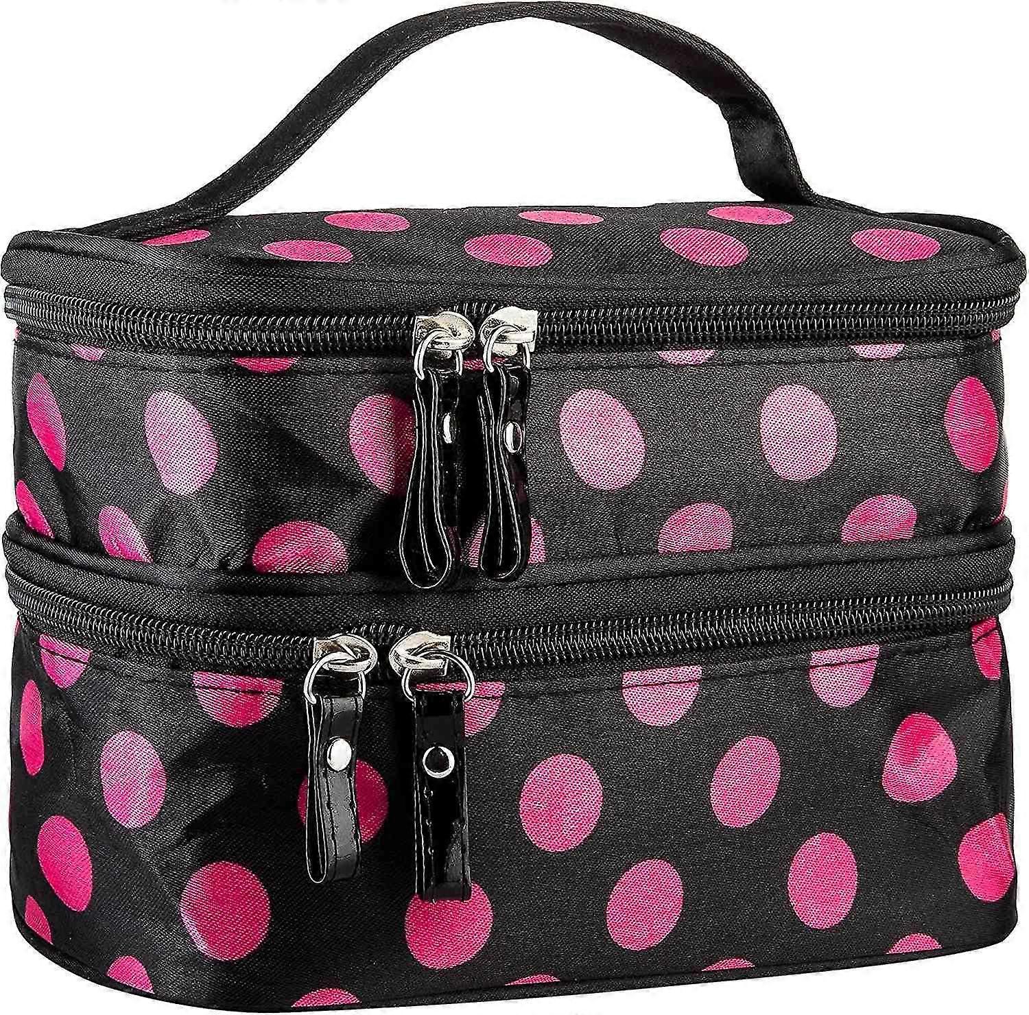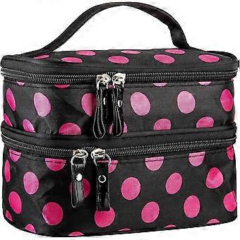 New Product,cosmetic Bag Makeup Case Double Layer Dot Pattern Portable Waterproof Wear Resistance Durable With