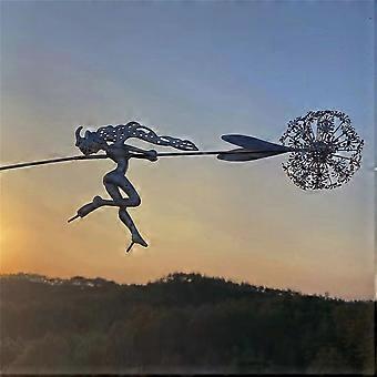 Fairy Steel Garden Sculptures Flower Fairy Dancing with Dandelion Garden Art Sculpture