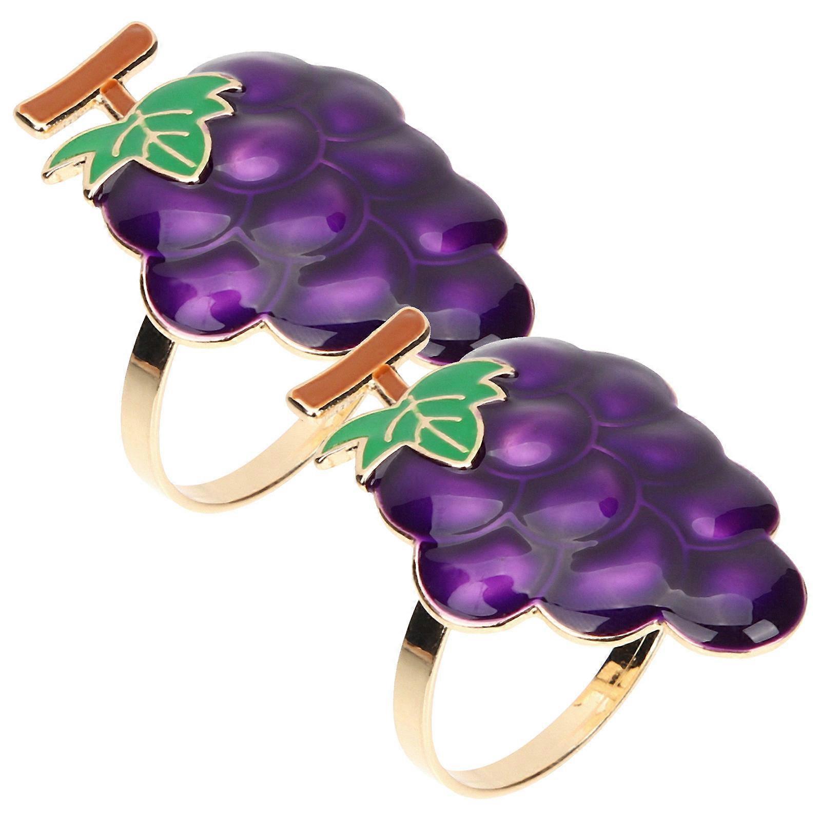 Napkin Ornament Grape Pattern Dinning Napkin Ring Holder Purple 5x3.6cm 2Pcs