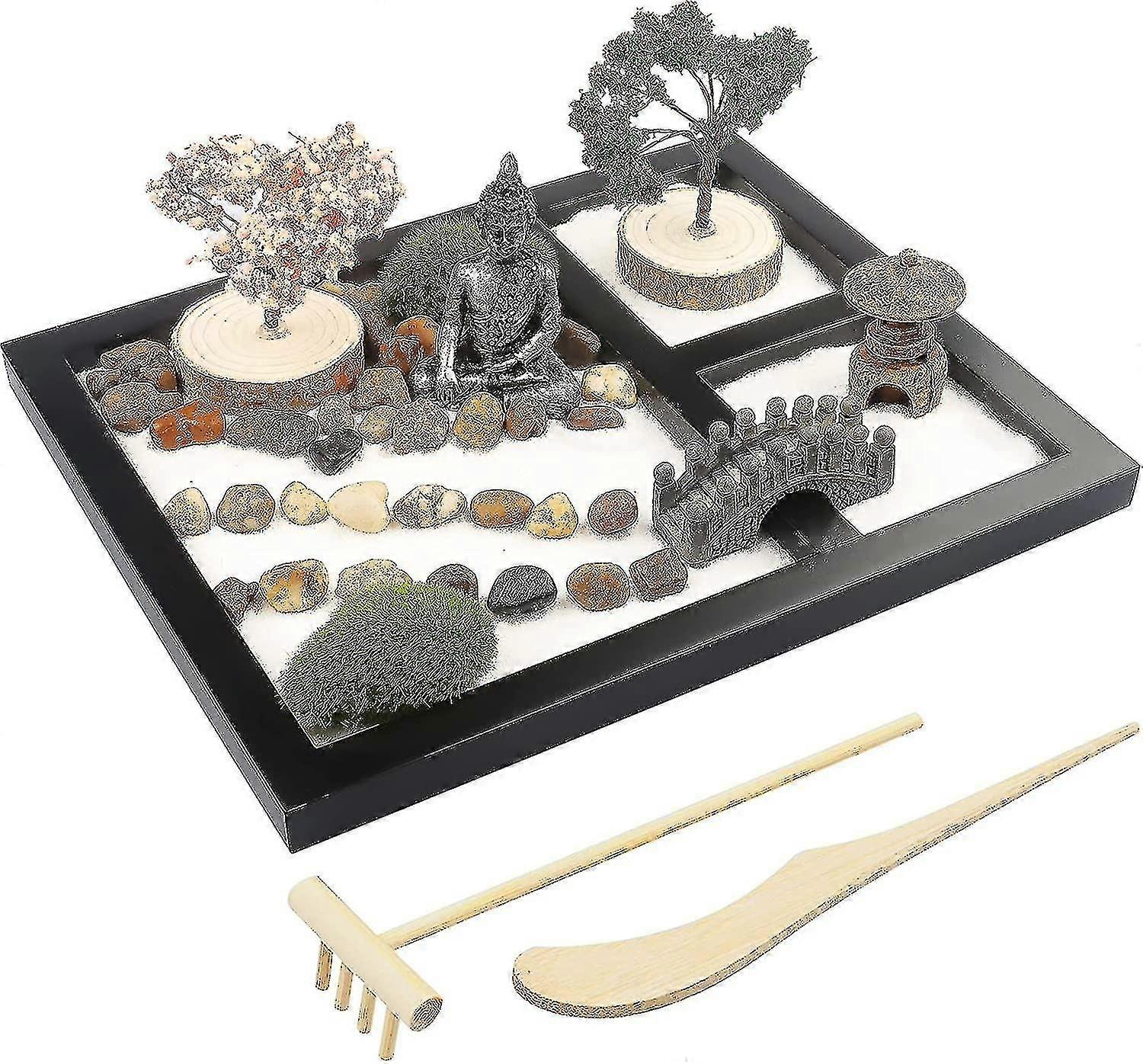 Tabletop Mini Zen Garden Artificial Bonsai Tree Rock Rake Meditation Zen Gift Lh-1-Good