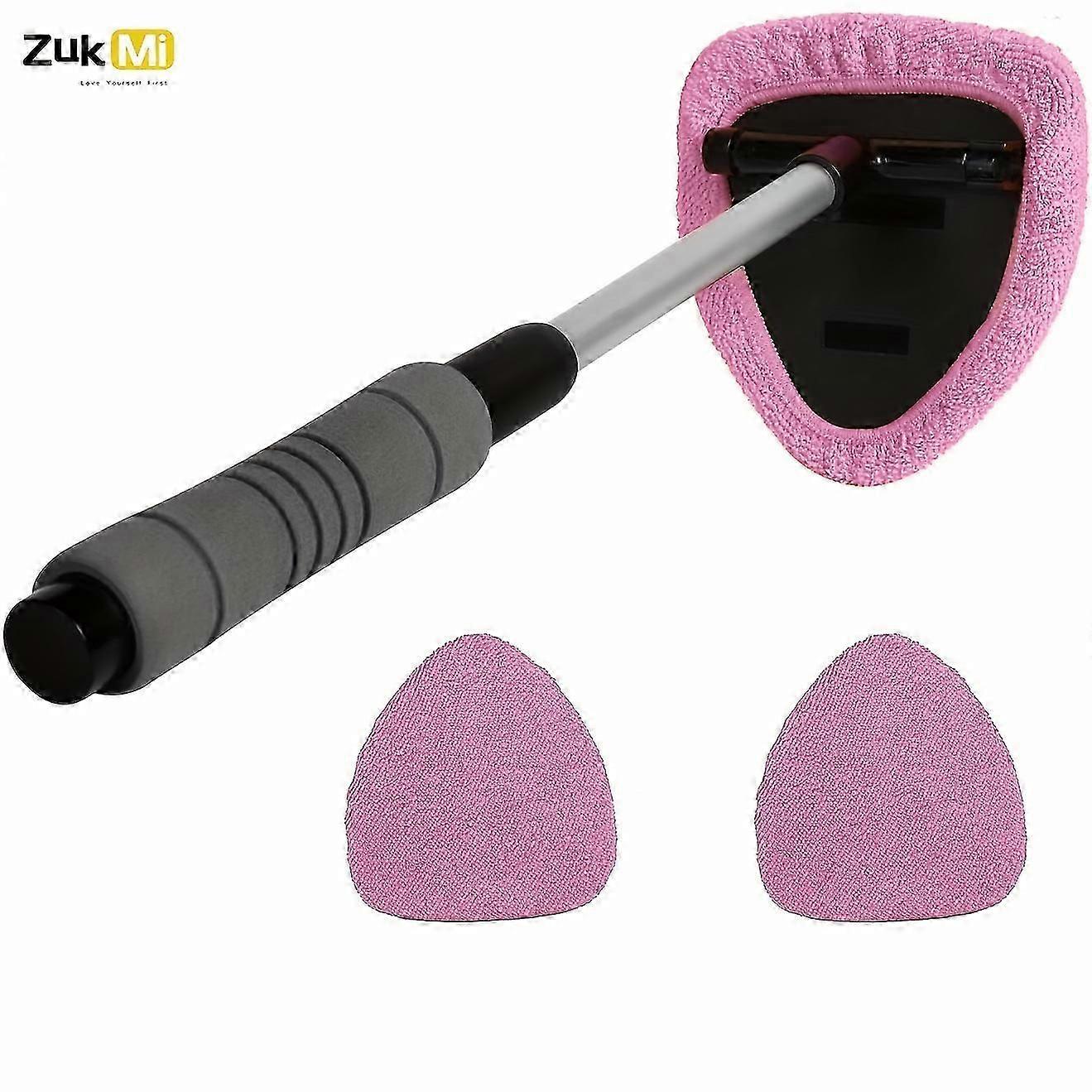 Windshield Cleaner -Microfiber Car Window Cleaning Tool with Extendable Handle Cloth Pad Head Auto Interior Exterior Glass Wiper Car Glass Cleaner Kit