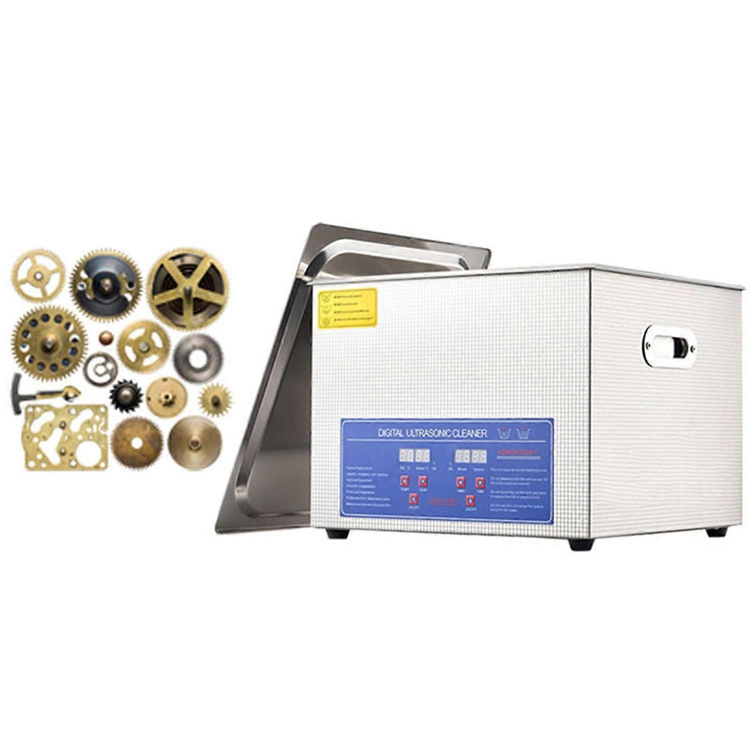 Feature: 1. EFFICIENT CLEANING: The constant power and temperature of the washing machine guarantees a high degree of cleanliness of the object to be cleaned and improves the accuracy of the object. 2. 4500ML CAPACITY: The internal capacity of the washing machine is 4500ml, which can accommodate a lot of items, and the cleaning can be completed at one time, saving time and effort. 3. QUIET WASHING: The lid on top of the washer prevents heat loss and reduces noise, giving you a quiet working environment. 4. METAL MATERIAL: The inner tank and housing of the cleaner are made of stainless steel and aluminum, stamped and formed with no welds. 5. WIDE USAGE: This cleaning machine can be used to clean electronic products, laboratory supplies, office supplies, household supplies, computer motherboards, etc. Specification: Item Type: Ultra Sonic Cleaner Material: Aluminum alloy, stainless steel Product Volume: 4500mL Ultra Sonic Frequency: 40kHz Number of Transducers: 3 Time Setting: 0-30 minutes Heating Temperature: 0-80℃ Heating Power: 100W Ultra Sonic Power: 180W Uses: Gold, rings, earrings, watches, glasses, sunglasses, tools, razors, toothbrushes, dentures, mouth guards, make up brushes, coins, etc.. Package List: 1 x Ultrasonic Cleaner1 x Cover1 x Basket1 x Instruction1 x Power Adapter Note: First, for the internal tank, use the handle to remove the tank from the base. Pour water into the tank, halfway up the maximum line of the tank, and clean with a soft sponge. Be careful not to wet the power connection at the bottom of the tank. After cleaning, fill and pour out the water several times until it is clean. For the external surfaces of the tank and base, when stains are difficult to remove, wipe with a clean cloth dampened with water. Be careful not to let water penetrate the plugs and power connections. After wiping, dry the appliance with a dry cloth.