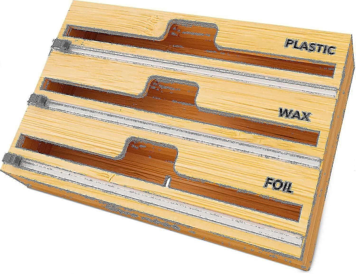 3 In 1 Wrap Organizer With Cutter And Labels, Plastic Wrap, Aluminum Foil And Wax Bamboo Dispenser (- GuanGuan