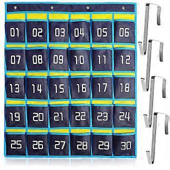 Numbered Classroom Organizer Phone Pocket Chart Pouch 30 Pockets Phones Holder Wall Hanging Storage Bag with Hooks