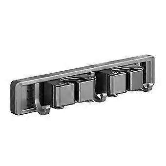 Mop And Broom Organizer with 5 Hooks Wall Mounted Punch-free Waterproof Anti-skid Roller Design Strong Load Bearing Bathroom Kitchen Mop Holder Rack