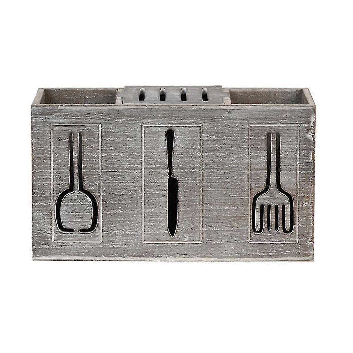 Rustic Wooden Flatware Organizer, 3 Section Kitchen Utensil Holder, Farmhouse Kitchen Cutlery Bin Countertop Storage Box