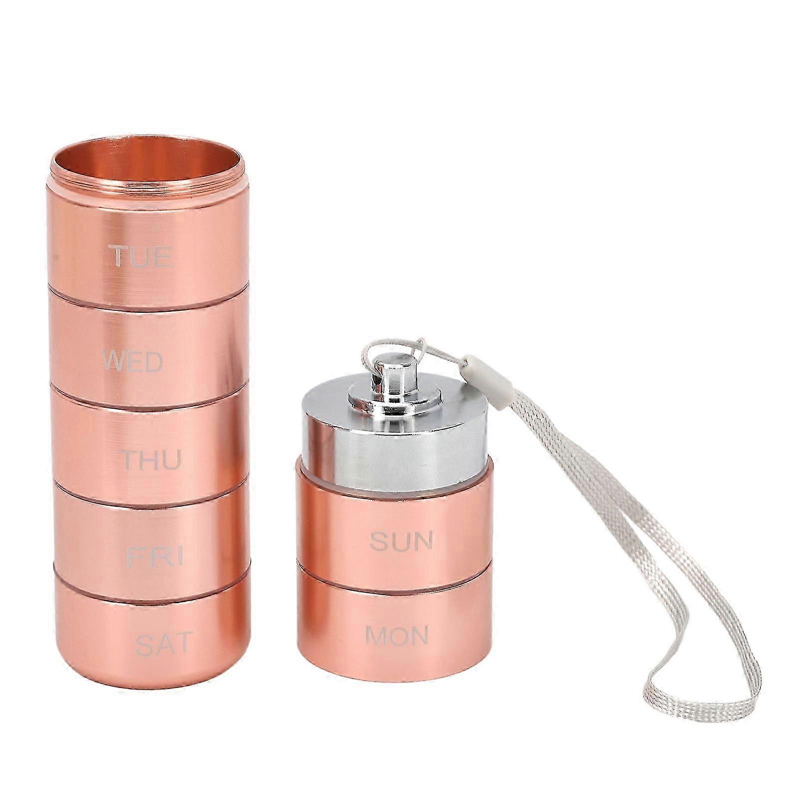 Metal Weekly Travel Medicine Organizer Portable Waterproof 7 Days Aluminum Alloy Tablets Box with Lanyard Rose Gold