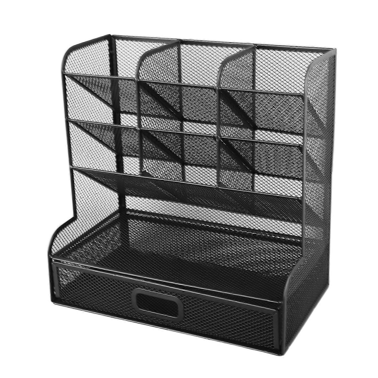 Desktop Stationary Organizer 9 Compartments Multifunctional Pen Storage Rack with Drawer