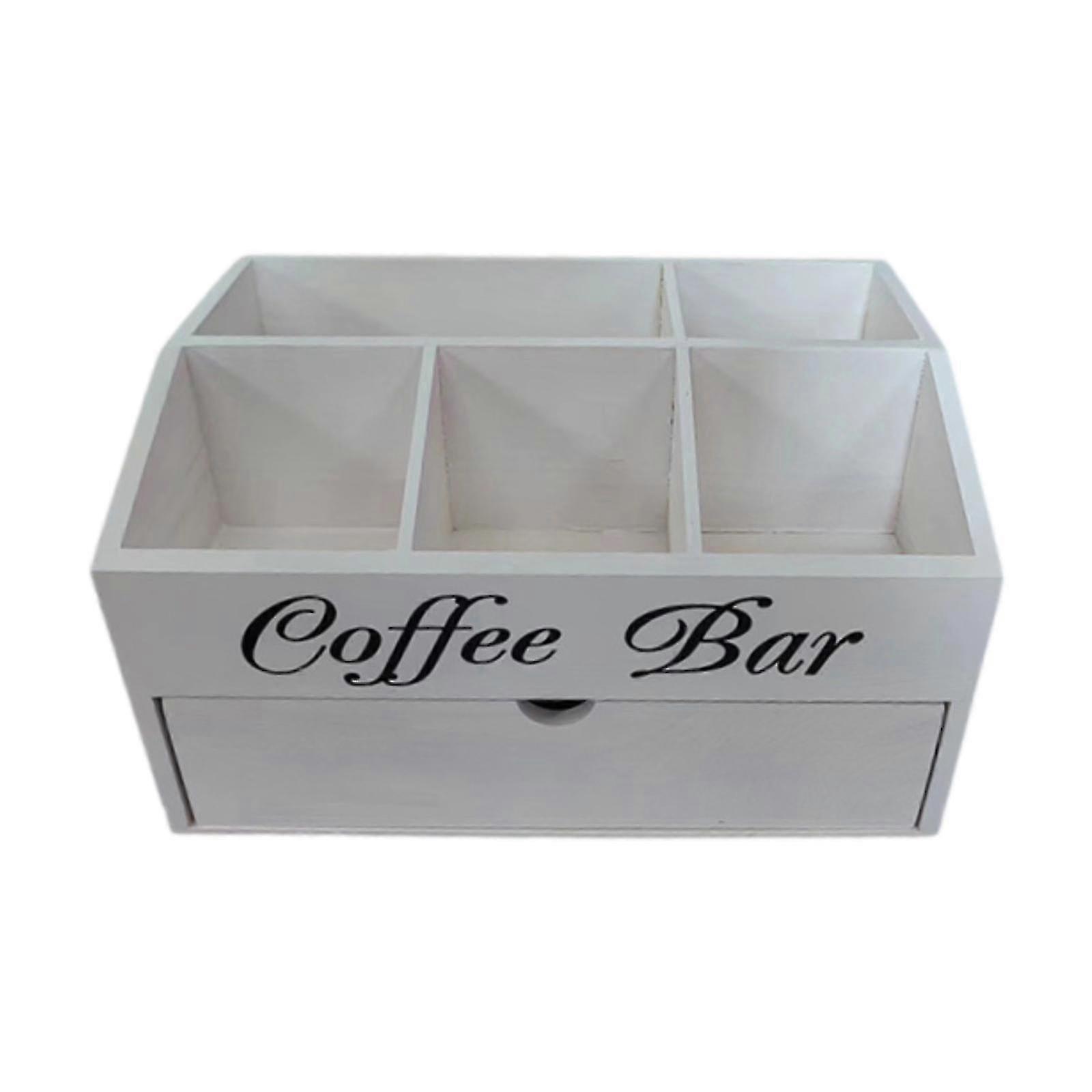 Wooden Coffee Pod Organizer with Storage Basket, Farmhouse Kitchen Countertop Station for Coffee Bar Decor and Gift