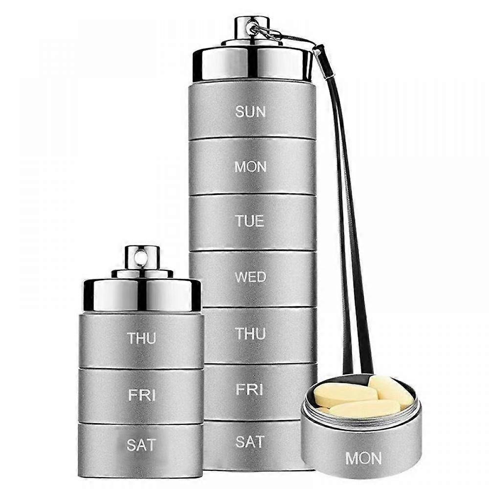 Metal Pill Organizer Weekly,Stackable Waterproof Travel Pill Box,Pill Case Container,7 Day Daily Med