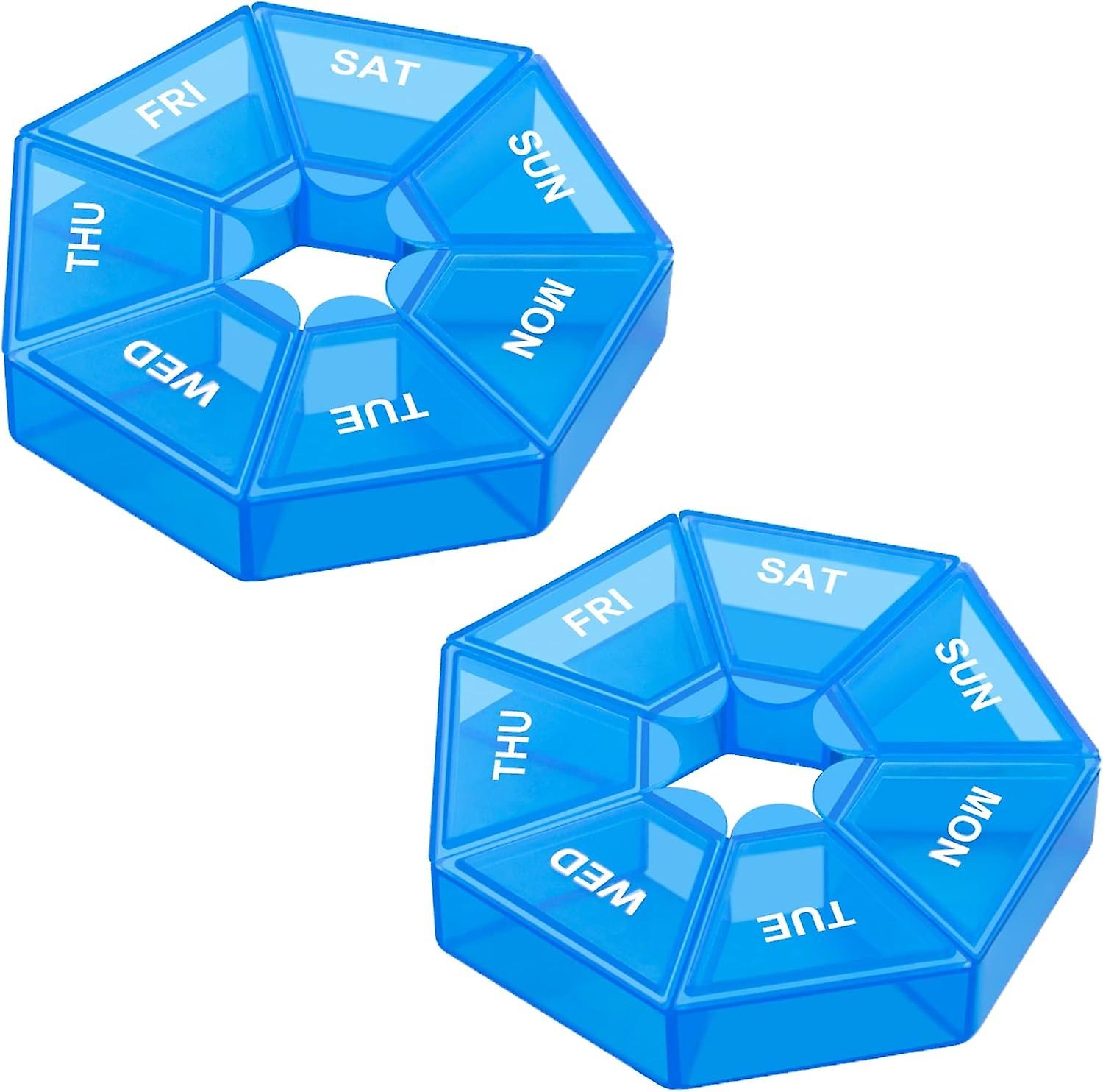 Weekly Pill Organizer, 2 Pack Portable Pill Box Medicine case 8 Colors (Seven Day) New Edition for V
