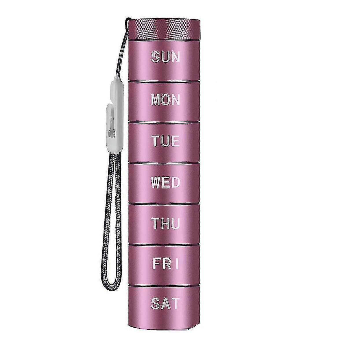 Weekly Travel Stackable Pill Organizer, Metal Pill Case 7-day Compartment Medicine Box Waterproof Pill Container Purple