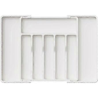 Cutlery Drawer Organiser, Adjustable Silverware and Flatware Holder, Compact Plastic Storage for Spoons Forks