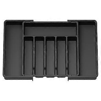 Capacity: Organize your kitchen countertop and make more space with the Silverware Organizer. Comes with two expandable panels on the left and right to store more silverware, cutlery and kitchen utensils. Adjustable Size: With an adjustable width between, it is compatible with different drawer sizes. The cutlery box dimensions are about 37.5x33x5.1cm. So no matter what size your kitchen drawers are, this organizer will surely fit in. Sort Your Silverwears: total of 8 compartments for easy sorting and storage, this organizer allows you to easily recognize, identify & pick up the items you need for use. Premium Material: Made of thick and sturdy premium PP material, the organizer is free so you can rest that it is safe to use with all forms of tableware. The durable construction means it is built to last for a long time. Easy to Use: Organizer is very easy to use with a unique edge design that allows you to move the organizer with ease. To clean, simply rinse with water to remove stains. Do not wash in dishwasher. size: About 37.5 x 33 x 5.1cm Material: PP colour: black Package Contents: 1 x Cutlery Drawer Organiser Only the above package content, other products are not included. Note: Light reflection and different displays may cause the color of the item in the picture a little different from the real thing. The measurement allowed error is +/- 1-3cm.