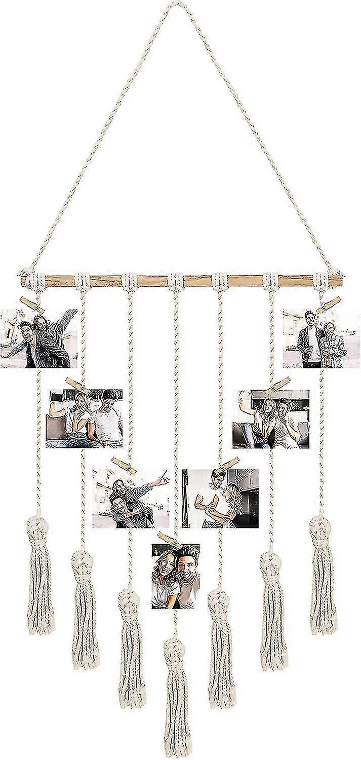 Organizer Photo Collage Wall With 25 Wooden Clips - 40 X 92 Cm - Holds 25 Pictures - For Hanging Pictures, Collages, Decorations, Prints, Works Of Art