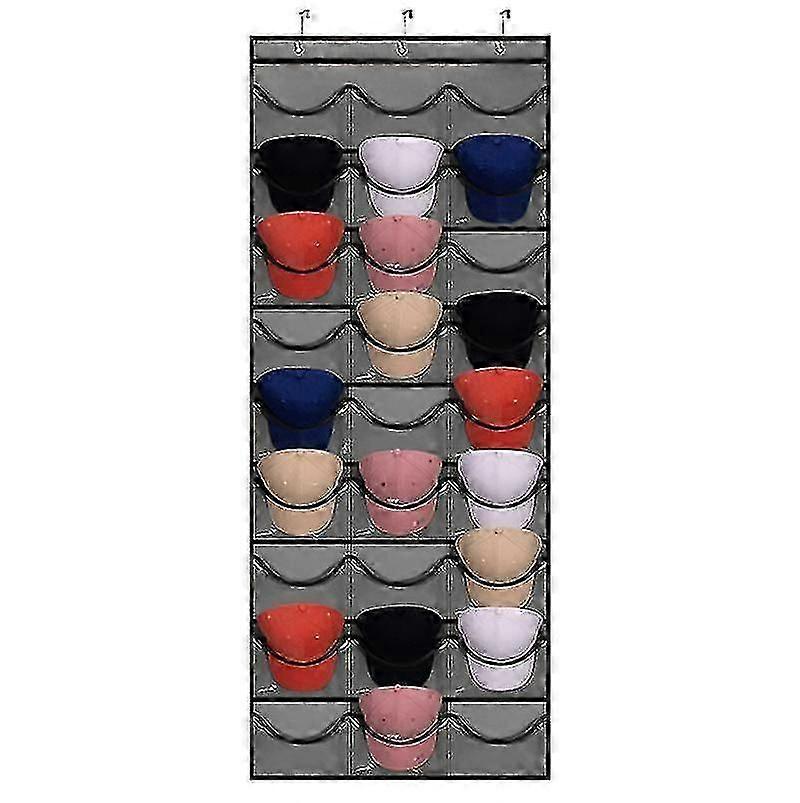 Black Hat Organizer with 27 Pockets for Baseball Caps - Wall-Mounted for Closets