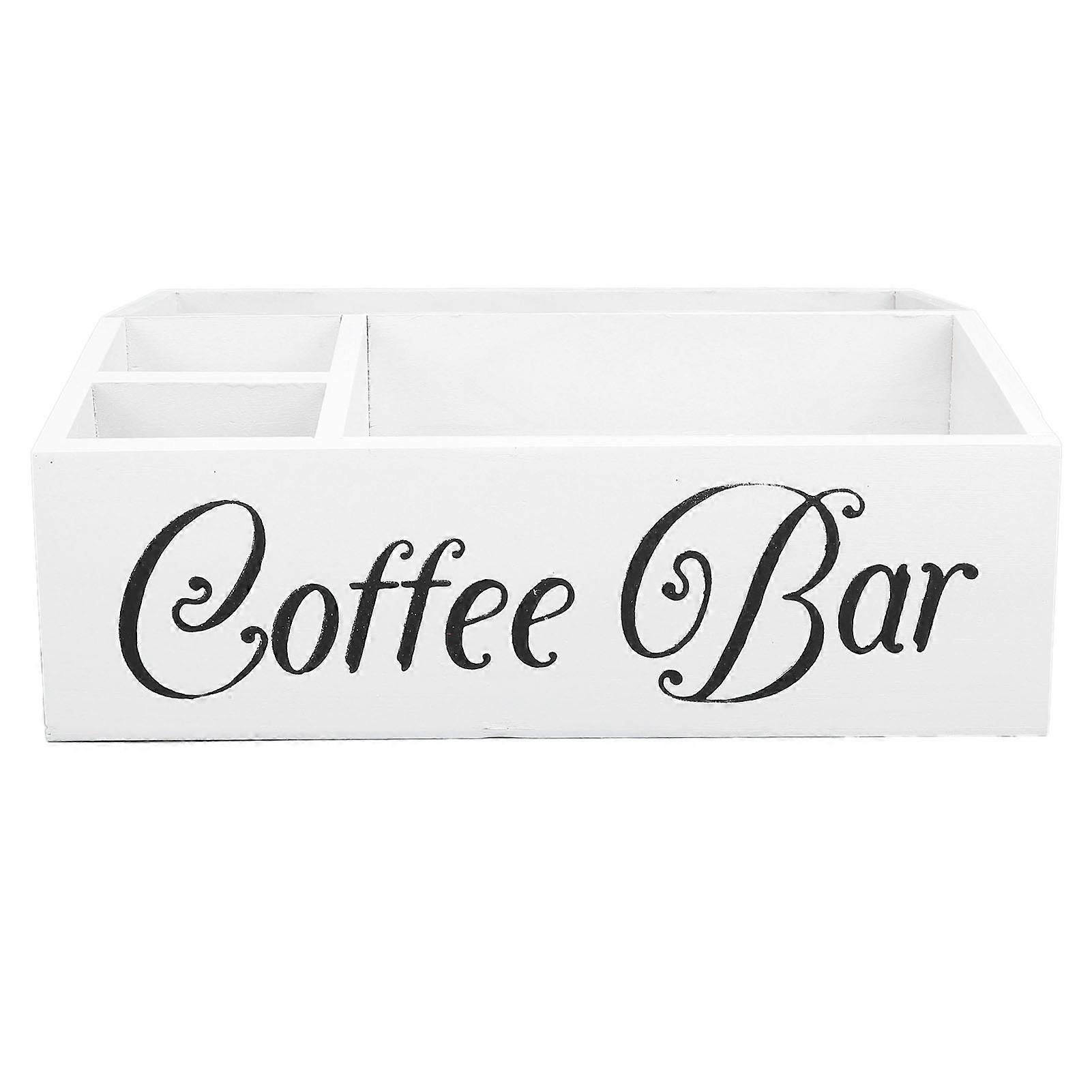 Coffee Station Organizer Wooden Coffee Bar Bin Box with 4 Compartments Coffee Bar Accessories Organizer for Countertop White