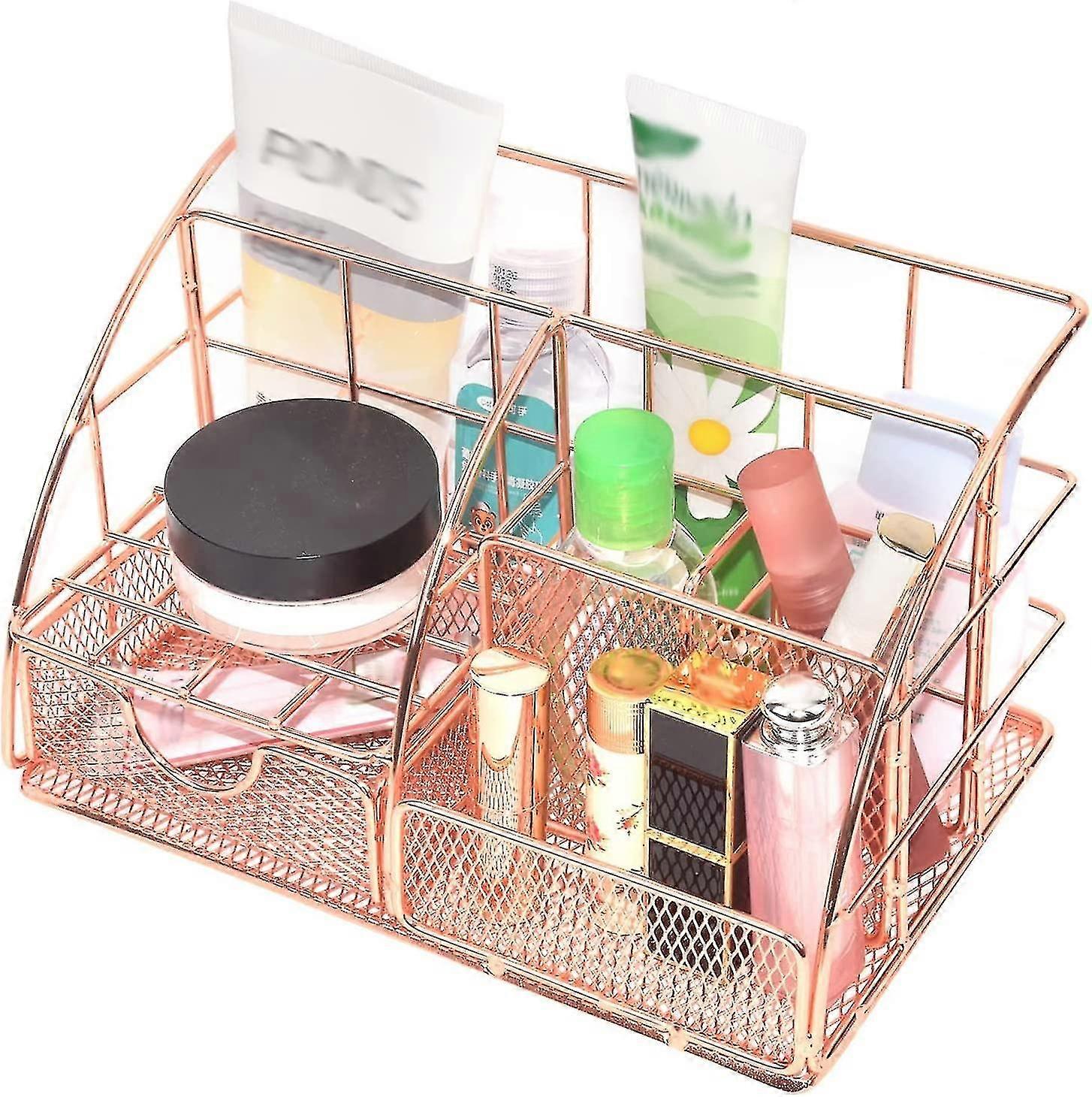 Metal Desk Organizer, Desk Table Stationery Storage Rack, Assemble Multifunction Cosmetic Pencil Pen Organizer (rose Gold)