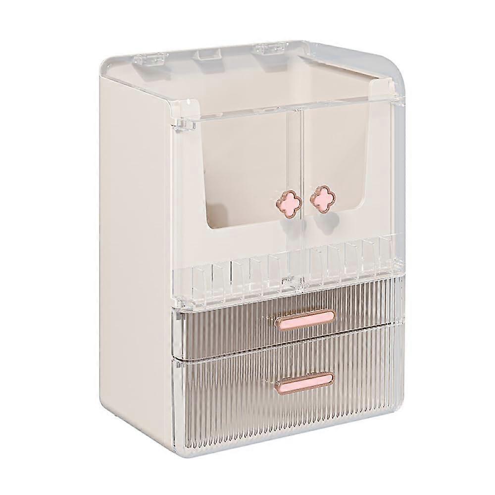 1. Spacious & Multi-Layered Design – This large-capacity acrylic makeup organizer (38.5CM H x 28CM W x 20CM D) features a dual-door compartment, two sliding drawers, and multiple sections to store lipsticks, perfumes, skincare bottles, and jewellery. 2. Dustproof & Protection – Designed with transparent acrylic doors, this cosmetic storage box keeps your makeup from dust, moisture, and spills, making it perfect for bathroom countertops, vanity desks, and dressing tables. 3. & – Made of high-quality, thick acrylic material, this skincare organizer is sturdy, scratch-resistant, and long-lasting. Its modern, elegant design enhances your bedroom or vanity décor. 4. Smooth Sliding Drawers & Easy Access – The two spacious drawers allow quick access to your brushes, sponges, compacts, and accessories, while the flip-top design makes it easy to grab your perfumes, lotions, and skincare essentials.
