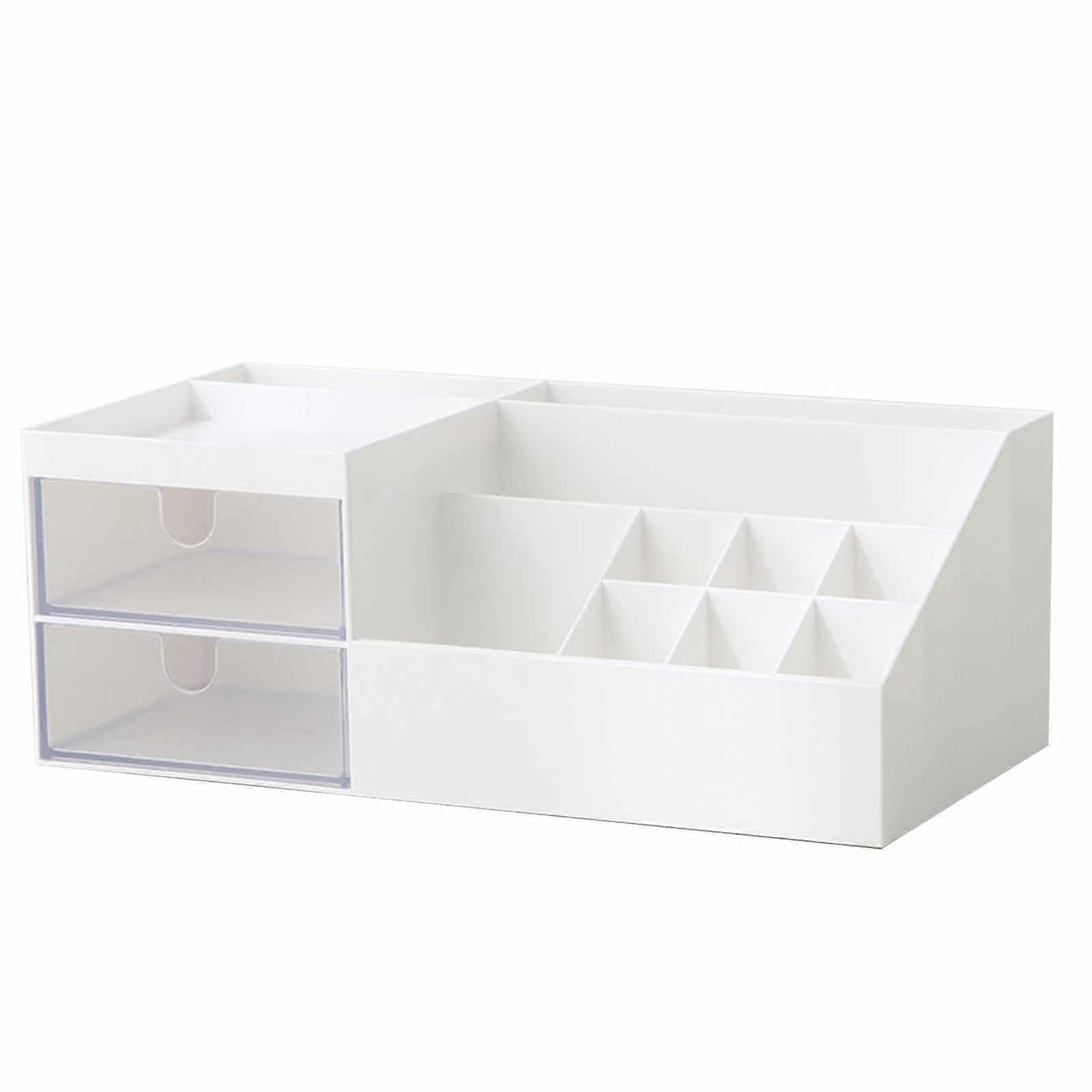 Makeup Organizer Large Capacity Multifunctional Cosmetic Storage Box with Drawers for Countertop Ivory White