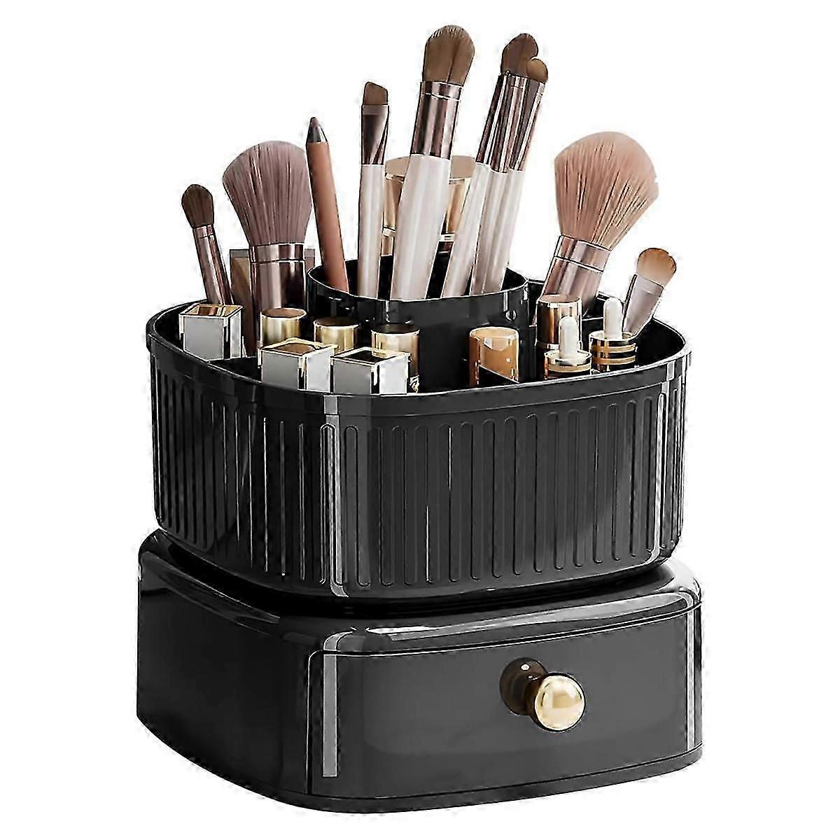 Stackable Makeup Organizer, Makeup Brush Holder with 360Rotating Makeup Organizer Tray, Cosmetic H