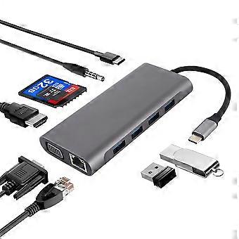 11 in 1 VGA + LAN Port + 4 x USB 3.0 + SD / TF Card + HDMI + Audio Port + USB-C / Type-C Female to USB-C / Type-C HUB Adapter